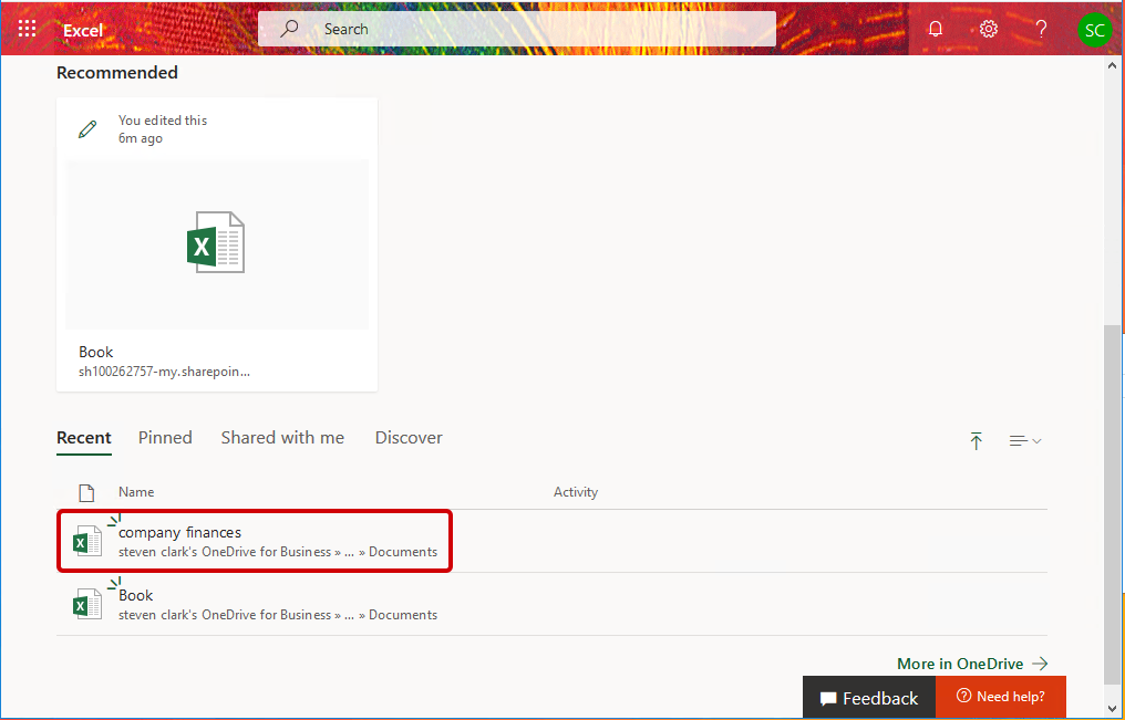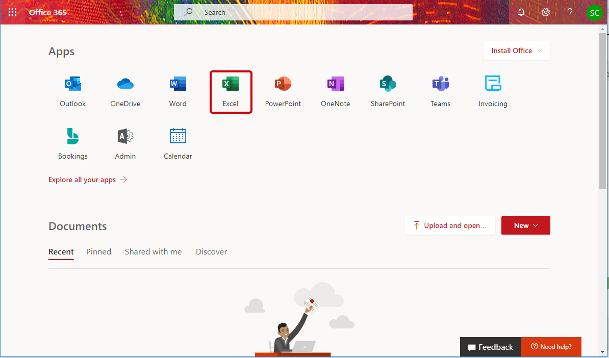 Select Excel from your Apps menu.