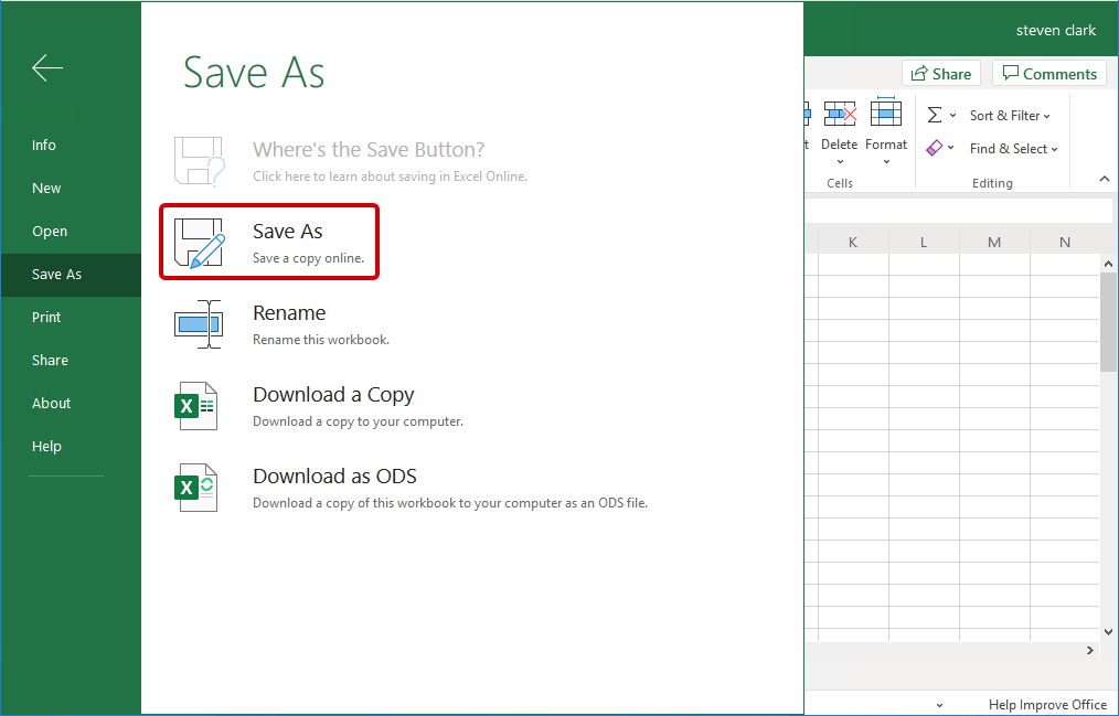 Excel will save your file automatically to your OneDrive/Sharepoint space with a default name during the edit. Click on "File" >> "Save As" to save as another name/location