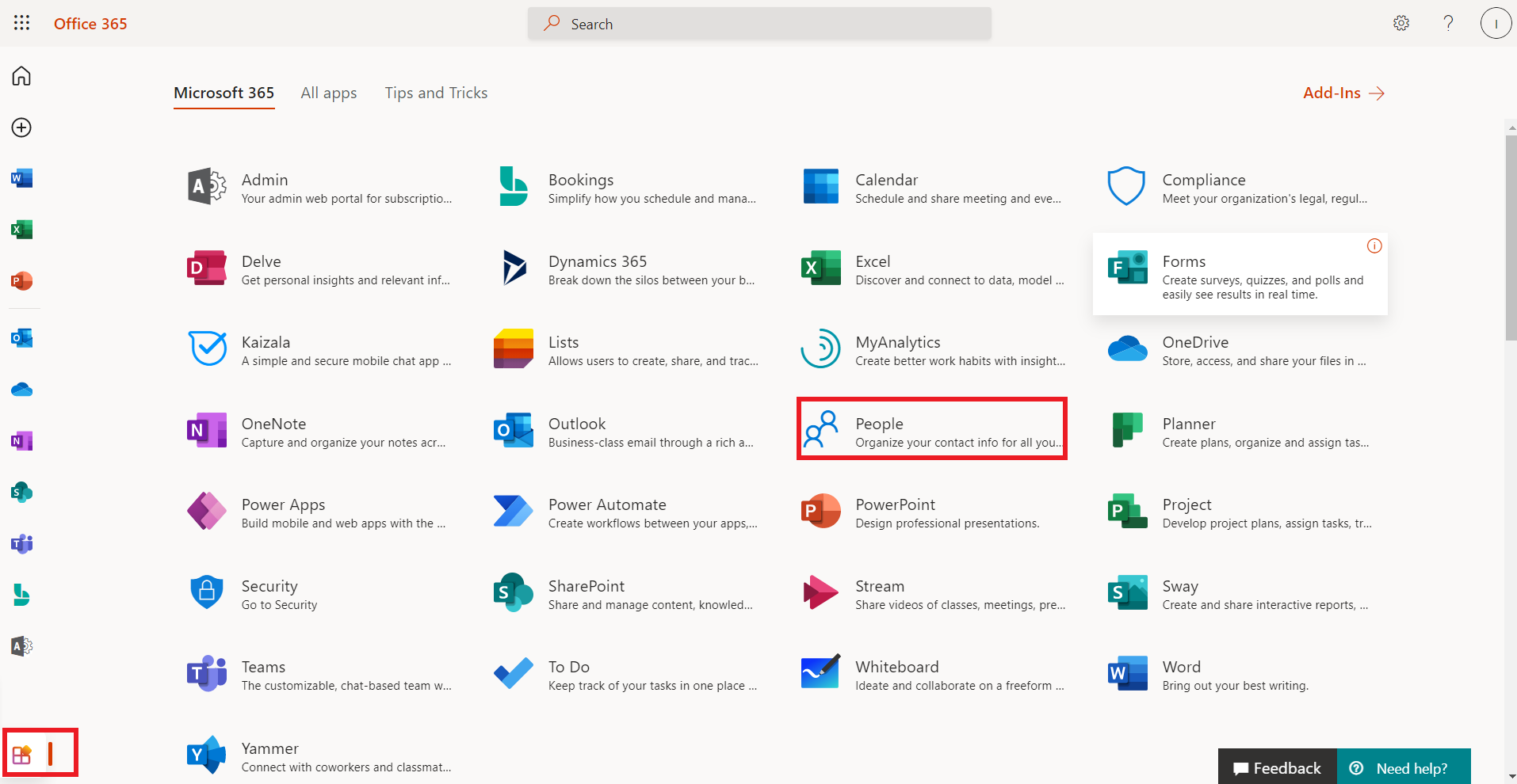 On the left menu, click on All Apps then select the People app.