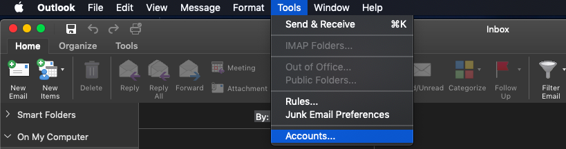 After activation you can now add your email account. Go to Tools and Accounts.