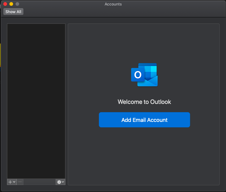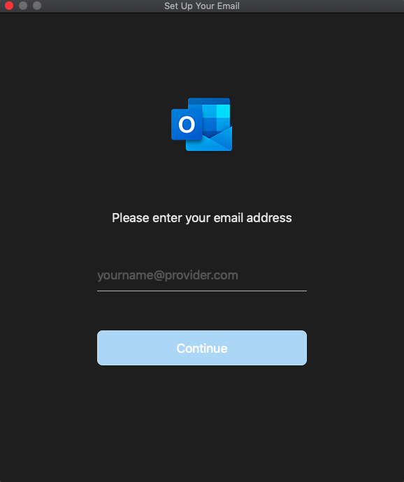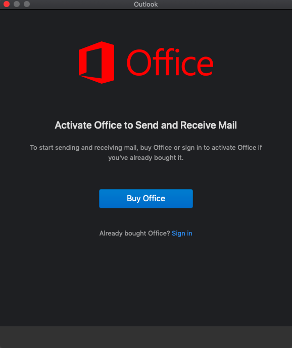 Before adding the email address, make sure Outlook is activated. Select the Outlook menu and Activate Office.