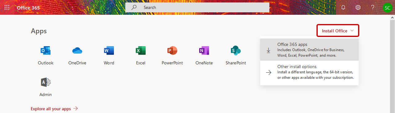 Login to the Microsoft 365 by visiting https://login.microsoftonline.com using your email address and password and select Install Office and Select Office 365 apps