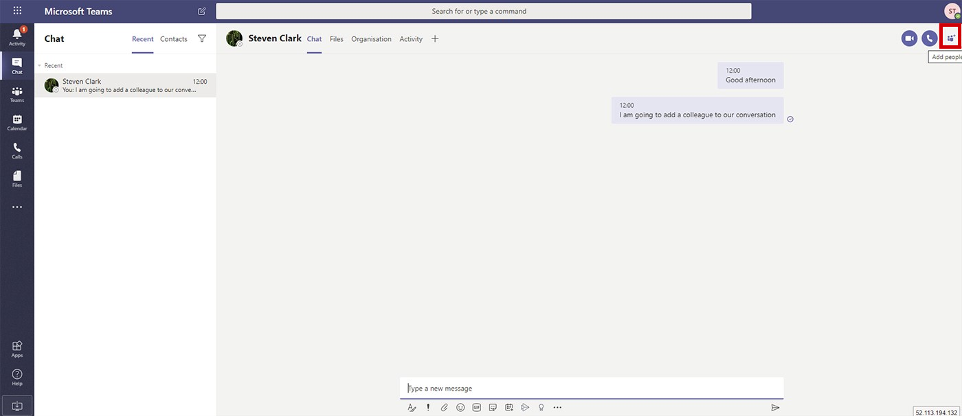 Left click in the long search bar at the top of the application and type the name of the person you wish to find then left click them