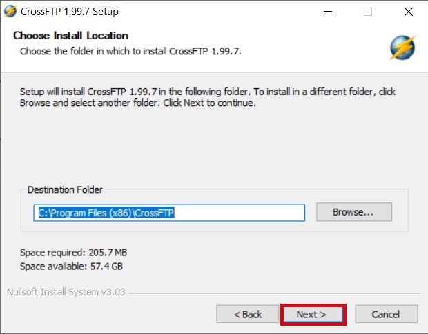 Do not amend the destination folder and click Next