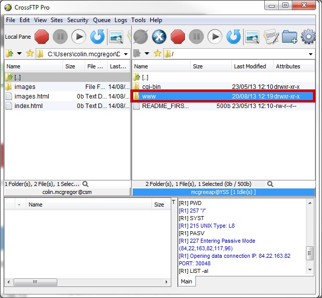 Under Remote Site,navigate to the WWW folder (this is always the folder your website files are located in unless stated differently in your welcome documentation) We suggest customers Read the file README_FIRST.txt in the Root of your webspace