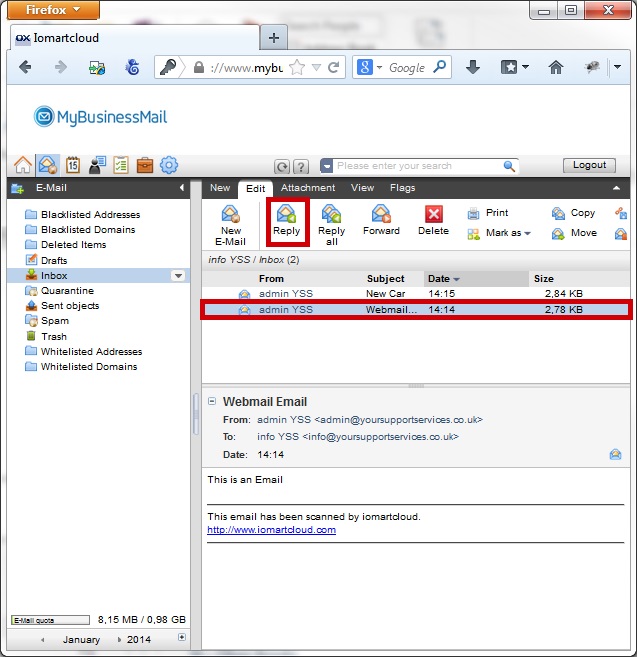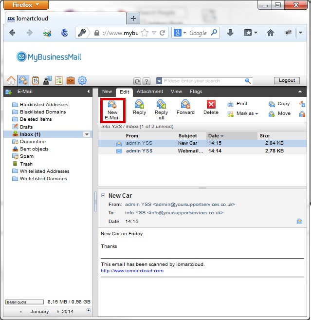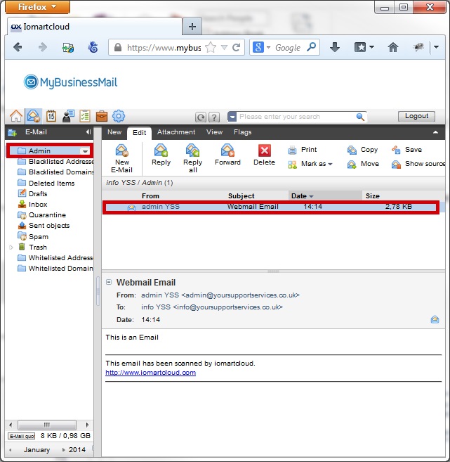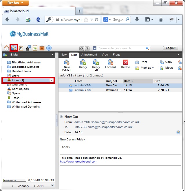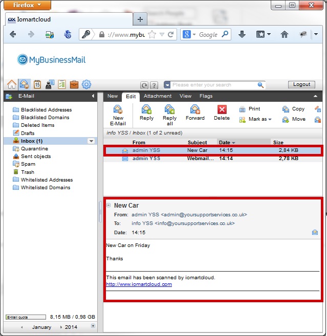 Click on the email you want to view and the content is displayed under the reading pane. (New or unread emails will be highlighted in BOLD)