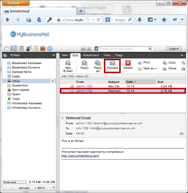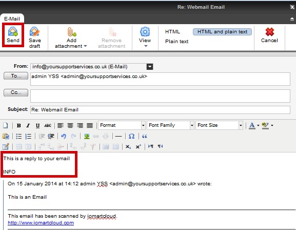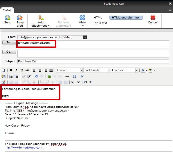Enter a recipient for the forwarded email and content for your reply and click "Send"