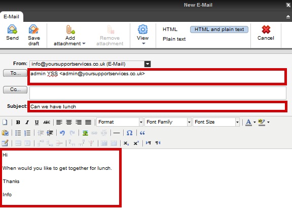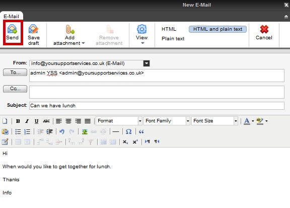 Enter the recipiant (you can access your contacts by clicking on "To"), a subject and some content in the email body.