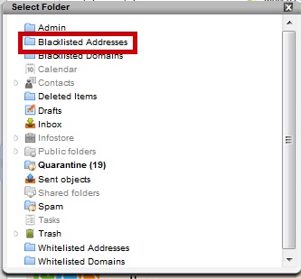 Select the "Blacklisted Addresses" folder and you will see the selected email