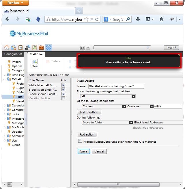 | Do the following : | Move to Folder | Blacklisted Addresses |