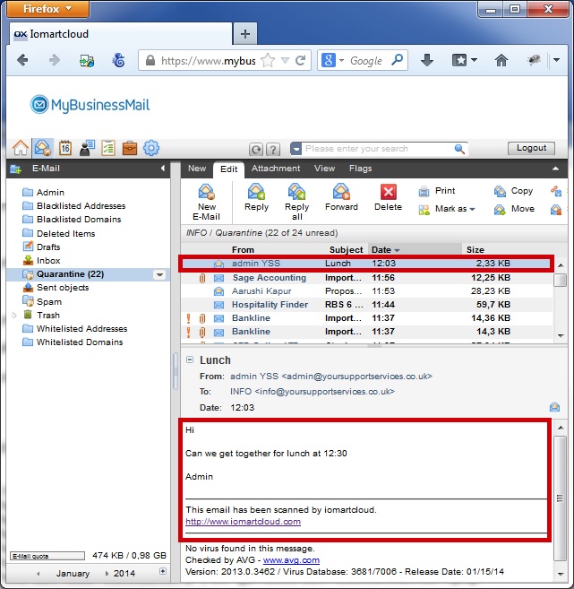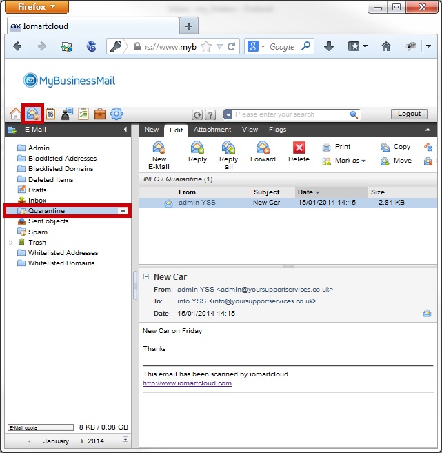All mail that has been Quarantined will be in the email page and the content can be read in the reading pane