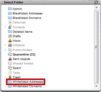 Select the "Whitelisted Addresses" folder and you will see the selected email
