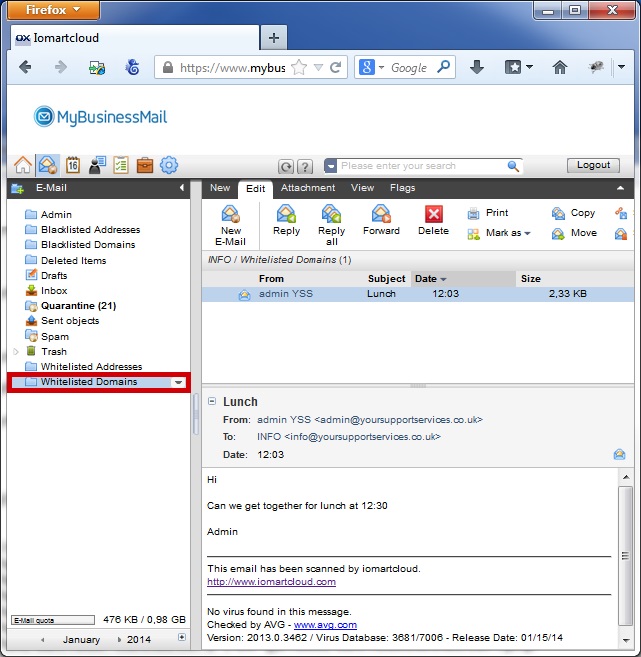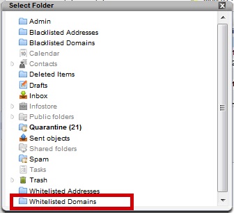 Select the "Whitelisted Domains" folder and you will see the selected email