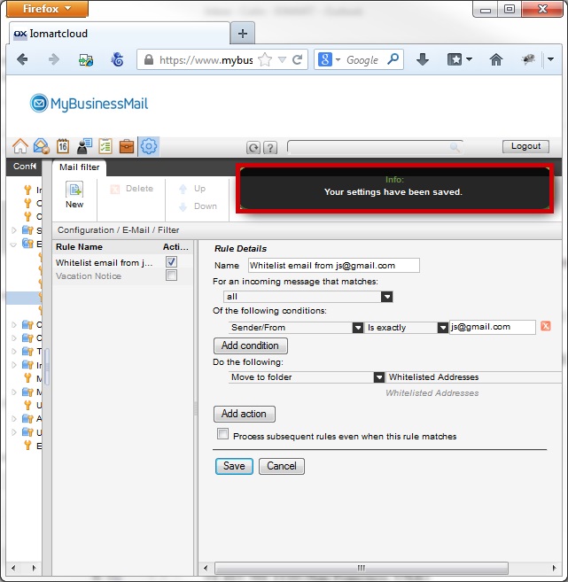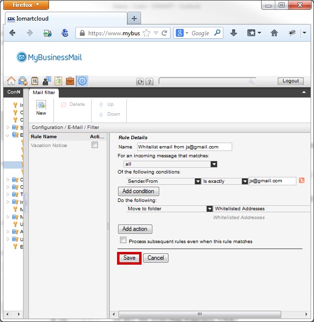 | Do the following : | Move to Folder | Whitelisted Addresses |