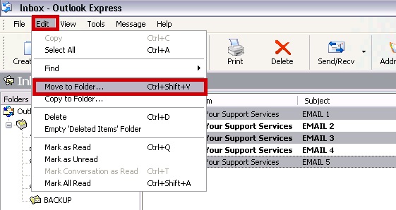 Click on the BACKUP folder to confirm your emails have moved