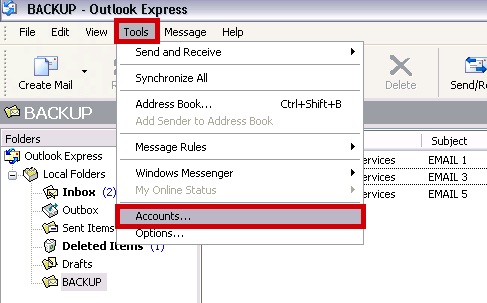 Navigate to the BACKUP Folder in Outlook Express