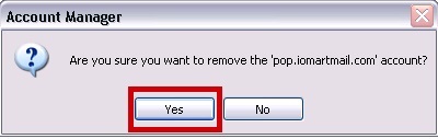 Confirm you wish to remove the account by clicking YES