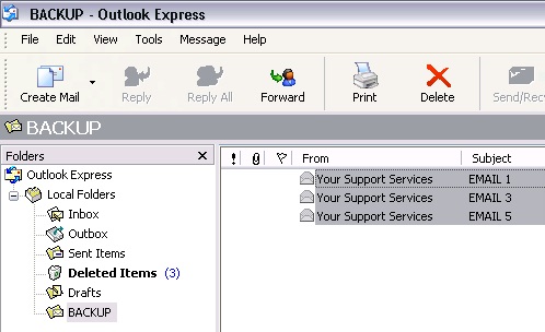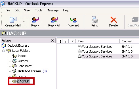 Once your email box is configured in Microsoft Outlook Express you can restore your backup to your inbox so your IMAP email is accessible on any client or device