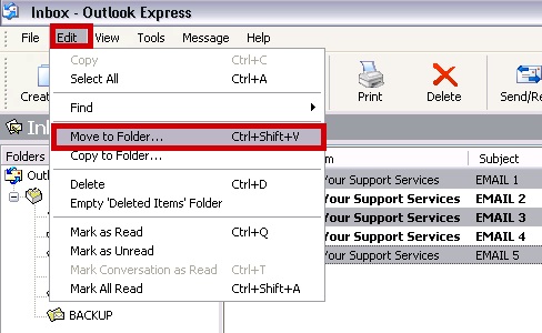 From the Edit Menu click on Move to Folder
