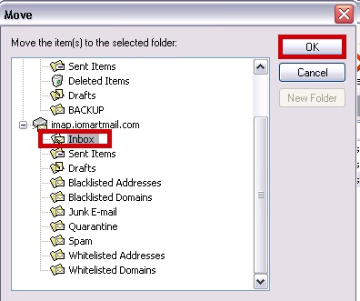 Click on your IMAP Inbox to confirm your emails have moved from the BACKUP folder
