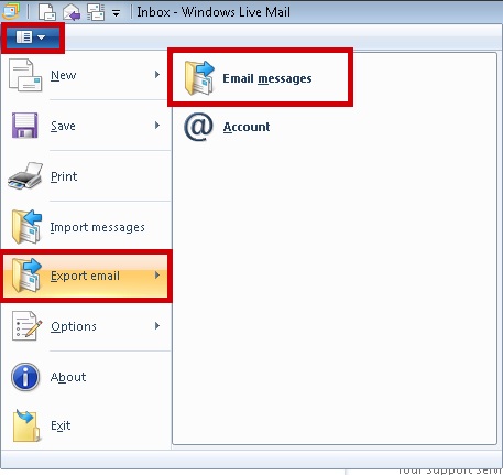 Start Windows Live Mail and select Windows Live Mail >> Export Emails >> Email Messages