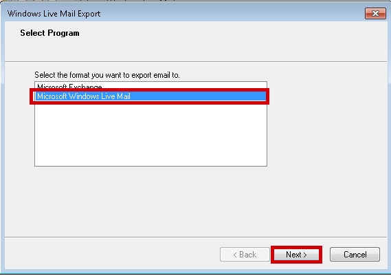 Select Windows Live Mail and click Next