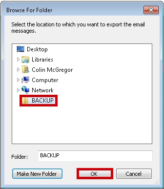 NOTE : The steps below will only back up email on