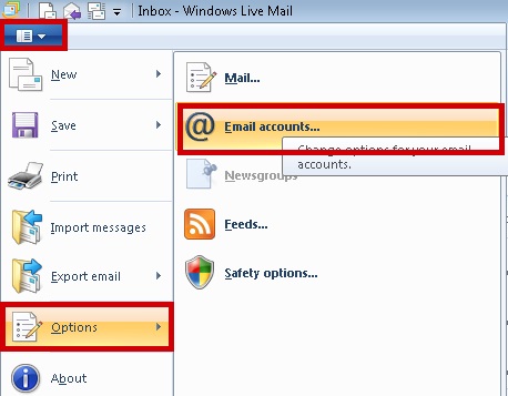 Select the Windows Live Mail>>Options>>Email Accounts.
