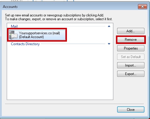 Select the account you wish to remove and click Remove
