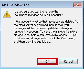 Confirm you wish to remove the account by clicking OK