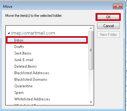 Navigate to your new IMAP Inbox and click OK