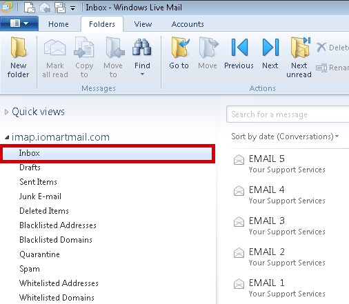 Navigate to your new IMAP Inbox to ensure the mail is accessible