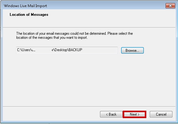 Select Windows Live Mail >> Import Messages