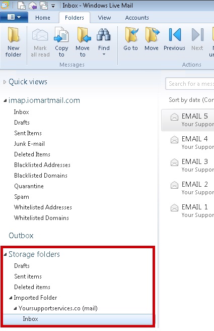 Once your email box is configured in Windows Live Mail you can restore your backup to your inbox so your IMAP email is accessible on any client or device