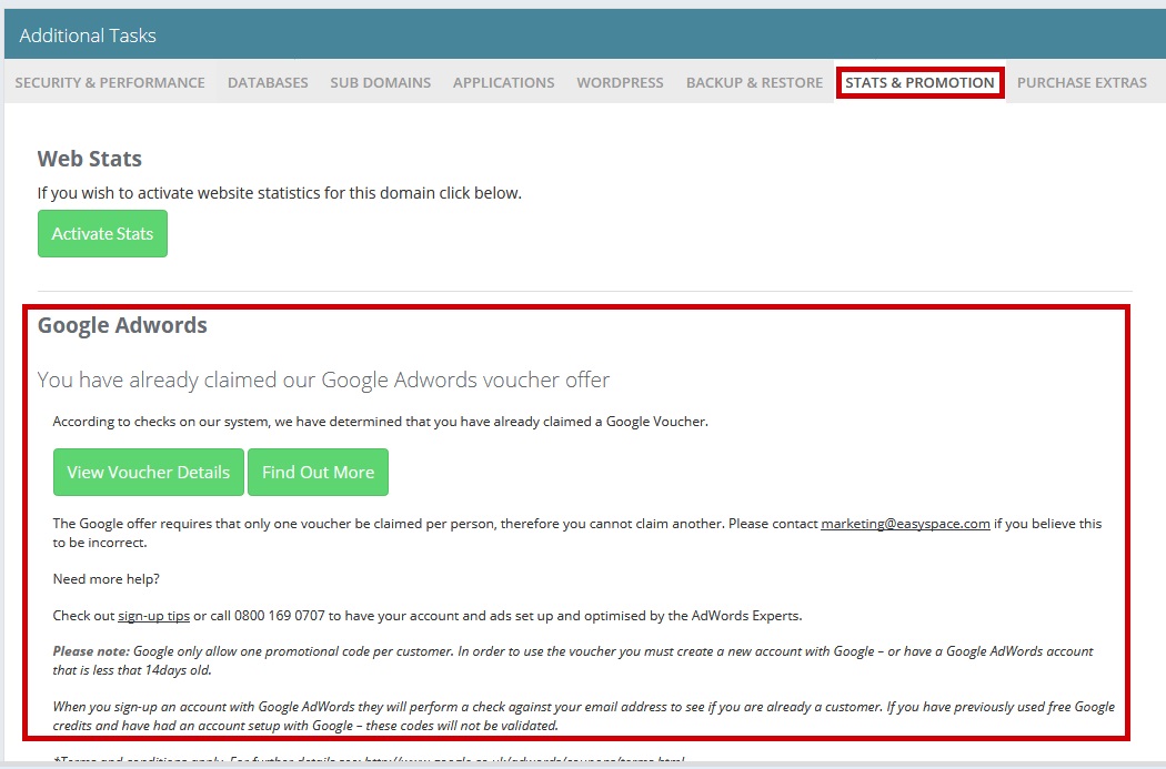 Claim Your Google Adwords from the Stats and Promotions Tab